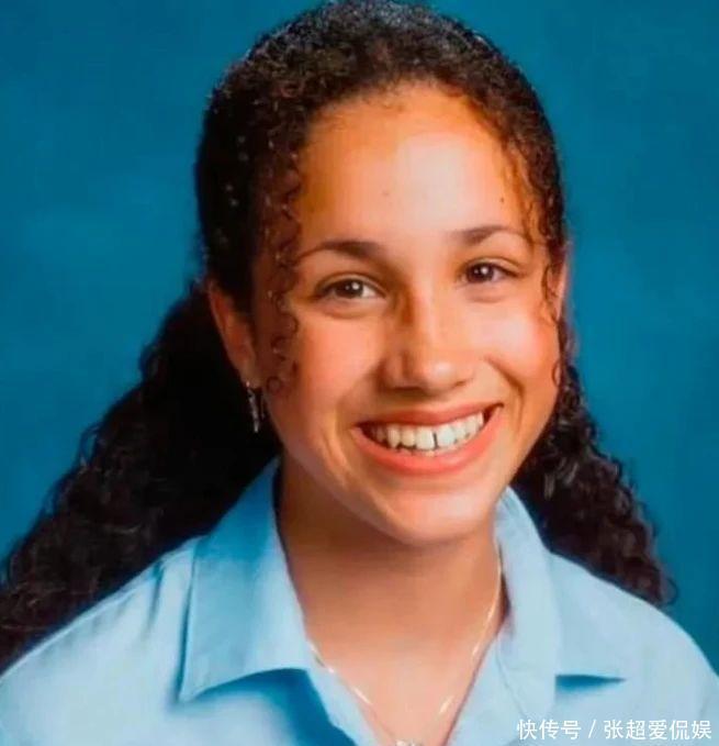 照片里,十几岁的梅根站在圣母玛利亚像旁,穿着高中校服,笑得一脸青涩。
